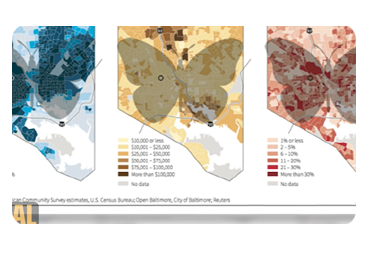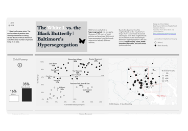 Urban Institute’s The Black Butterfly analysis Family League of Baltimore’s "CHNA: Through a Health Equity Lens” Virtual Launch Event Family League of Baltimore CHNA document Civil Justice’s Black Butterfly analysis Omar Abassi’s White L vs. Black Butterfly data visualization (Tableau Community and Action Analytics) Lessons from Visualizing Systemic Racism in Baltimore (blog post) End Legalized Theft of Black Owned Land by Nneka Nnamdi with Eli Pousson Baltimore Business Journal’s Black Butterfly analysis of PPP Loans by Holden Wilen Catie Peterson’s graphic design and mapping work for the Baltimore Business Journal with Holden Wilen Agora Journal describing Baja’s work as Climate and Resilience Planner The Real News Networks analysis of homicides and the Black Butterfly NCRC blog post on the Black Butterfly by Marceline White Black Butterfly Urban Farmer Academy (Farm Alliance of Baltimore) Is that new equity hire token or transformational? Al G. Gourrier’s Banking the Black Community Angel King Wilson’s book “Am I Doing This Right?” Shae McCoy’s book “West Baltimore Ruins” Dent Hoodie (Front & Back) Dent Varsity Jacket "A Butterfly in COVID" by Colin Starger & Doug Colbert The Black Butterfly Network